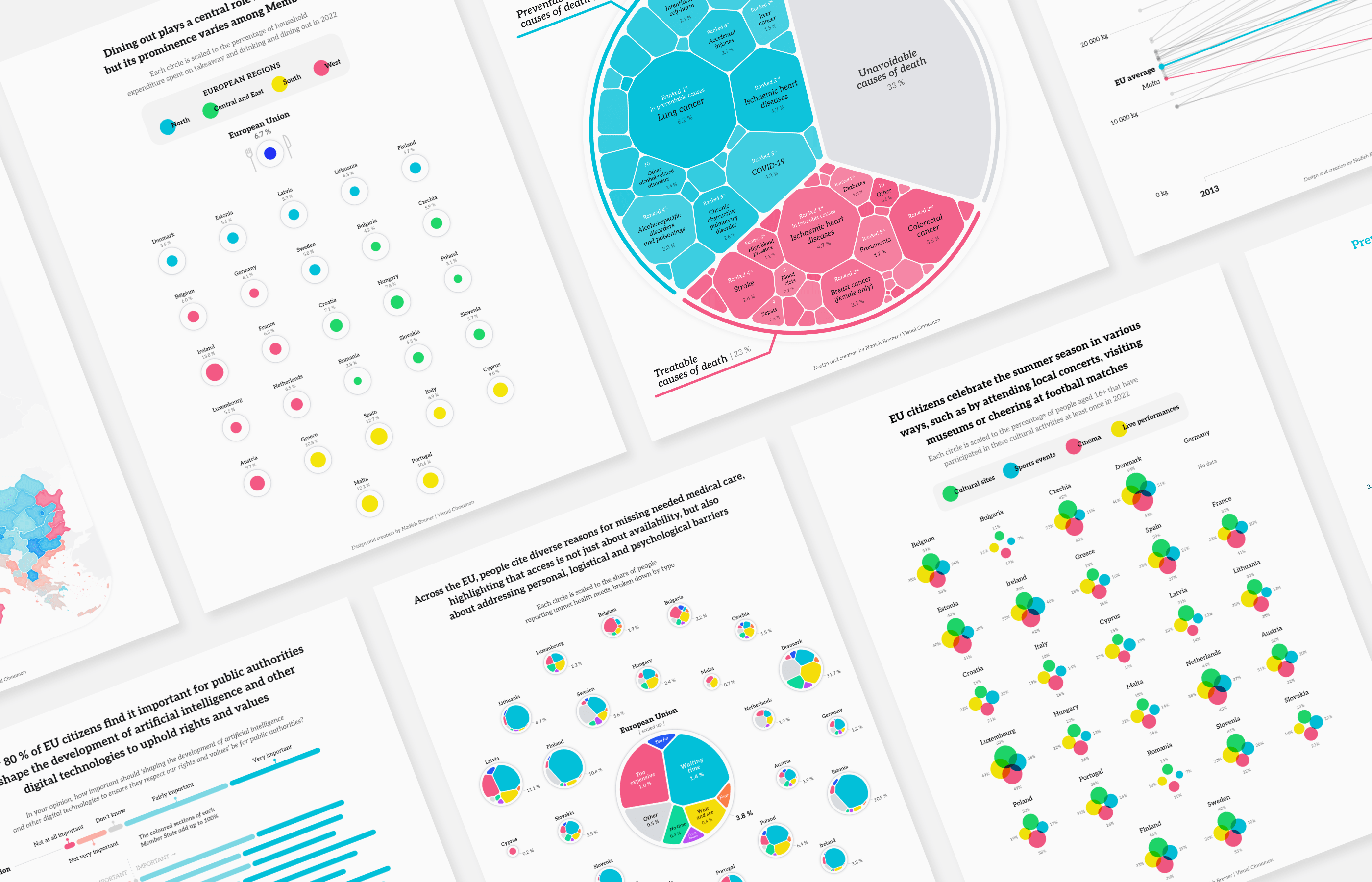 The Publications Office of the European Union invited me to design data visualizations for three of their monthly Data Stories, each exploring a different theme through the EU’s open data.